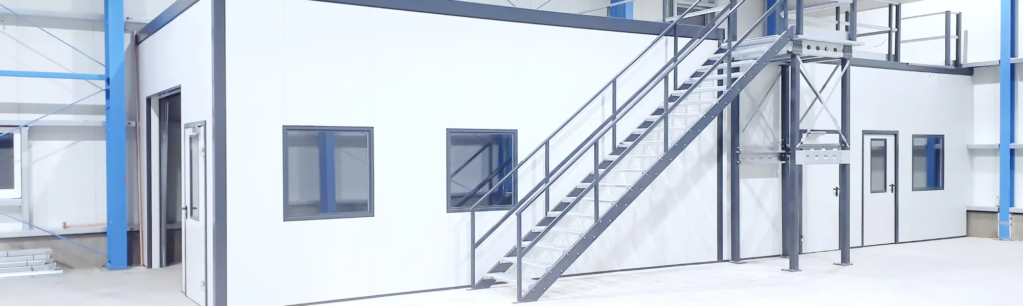 Beim Einzug in die neue Produktionshalle entstand Bedarf nach neuen Halleneinbauten. Das Unternehmen Extruder Experts aus Monschau benötigte für die neue Messmaschine der Klostermann GmbH & Co. KG einen klimatisierten Messraum mit Sektionaltor. Außerdem wurden neue Büroräume und eine sanitäre Anlage gebraucht. Die Decke des Halleneinbaus muss begehbar und belastbar sein, damit dort Verpackungsmaterial gelagert werden kann.