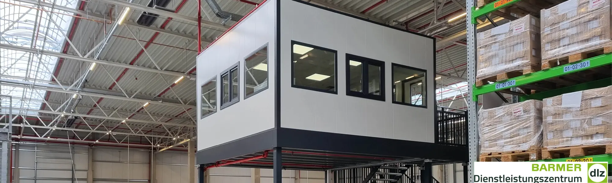 Das in 3,40 m Höhe entstandene, 25 Quadratmeter große Hallenbüro mit Leitstandfunktion, wurde im Werk von Jansen Systembau vorgefertigt und innerhalb eines Montagezeitraums von 7 Werktagen erstellt.