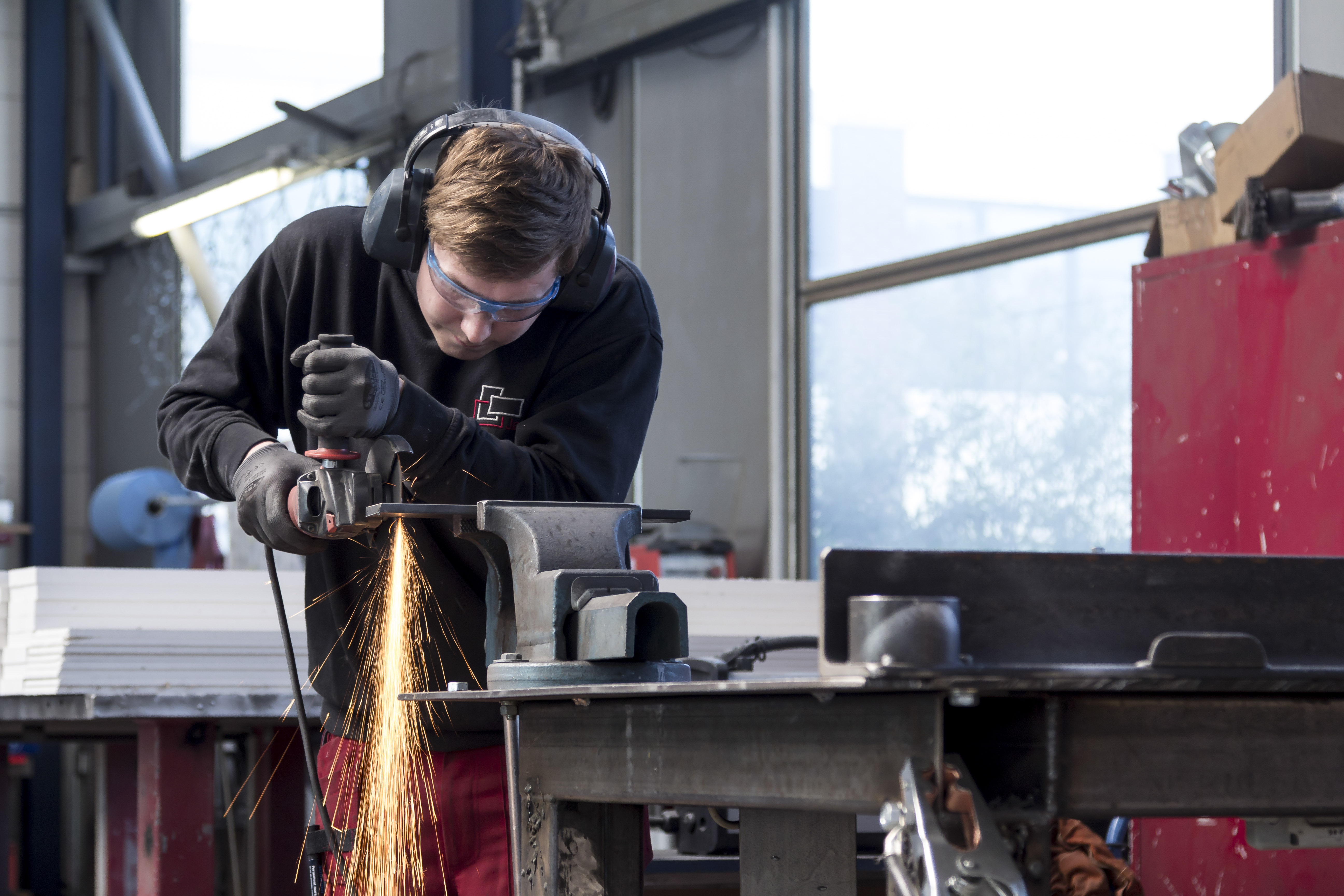 Ich habe zuerst ein Praktikum zur technischen Produktdesignerin angefangen, aber nach ein paar Tagen gemerkt, dass das nicht mein Ding ist. Ich hatte dann die Möglichkeit, das Praktikum in der Schlosserei bei Jansen fortzusetzen und das hat mir echt gut gefallen. Im Anschluss habe ich dann noch einen Ferienjob hinten drangehangen und mich ein Jahr später dazu entschieden, eine Ausbildung als Metallbauerin zu beginnen.