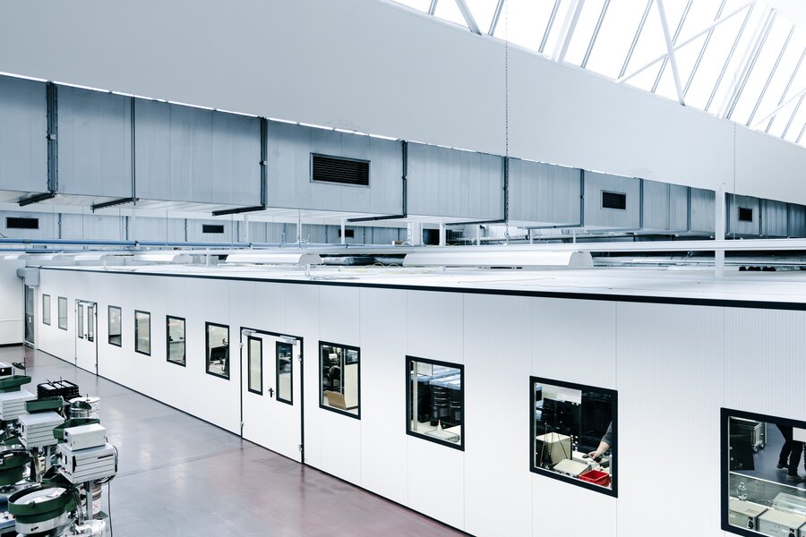 Selbst in besonders sensiblen Bereichen in Bezug auf Reinheit oder HACCP-Konformität, kann auf Edelstahlausführungen für den Wand- und Deckenpaneele, sowie auf einen geschweißten Stahlbau aus Edelstahl, zurückgegriffen werden.