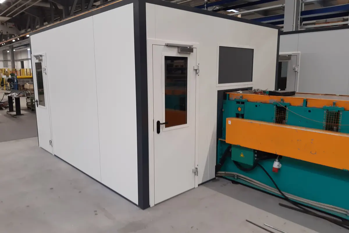 Einhausungen von lauten Maschinen, wie zum Beispiel einer Stanze oder einer Bandsäge zum Schneiden von Stahlprofilen, dienen dazu, den Lärmpegel des Umfeldes zu minimieren. Hier kommen oft unsere Schallschutzpaneele zum Einsatz. Auf Wunsch führen wir auch schalltechnische Vorher-Nachher-Messungen durch.