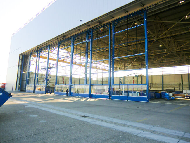 Sie haben die Wahl - Hangarschiebetore von Jansen bestehen aus frei verfahrbaren Torelementen. Dadurch können die einzelnen Elemente frei auf der Laufschiene verschoben werden. So können Sie ihren Hangar an der erforderlichen Stelle öffnen.