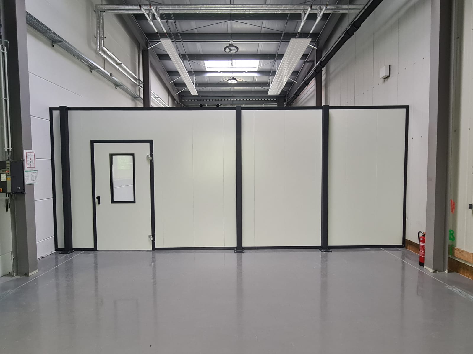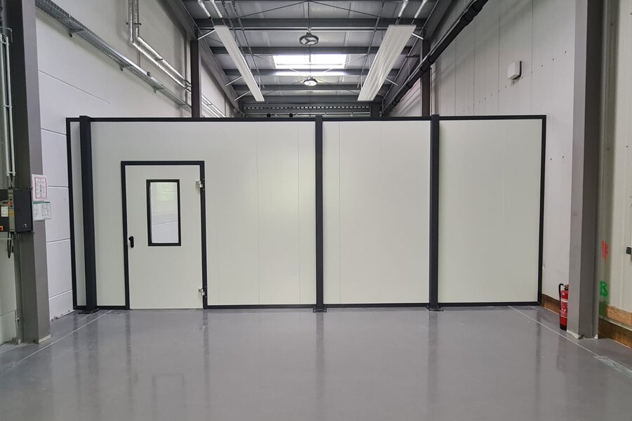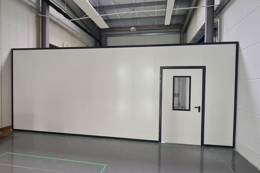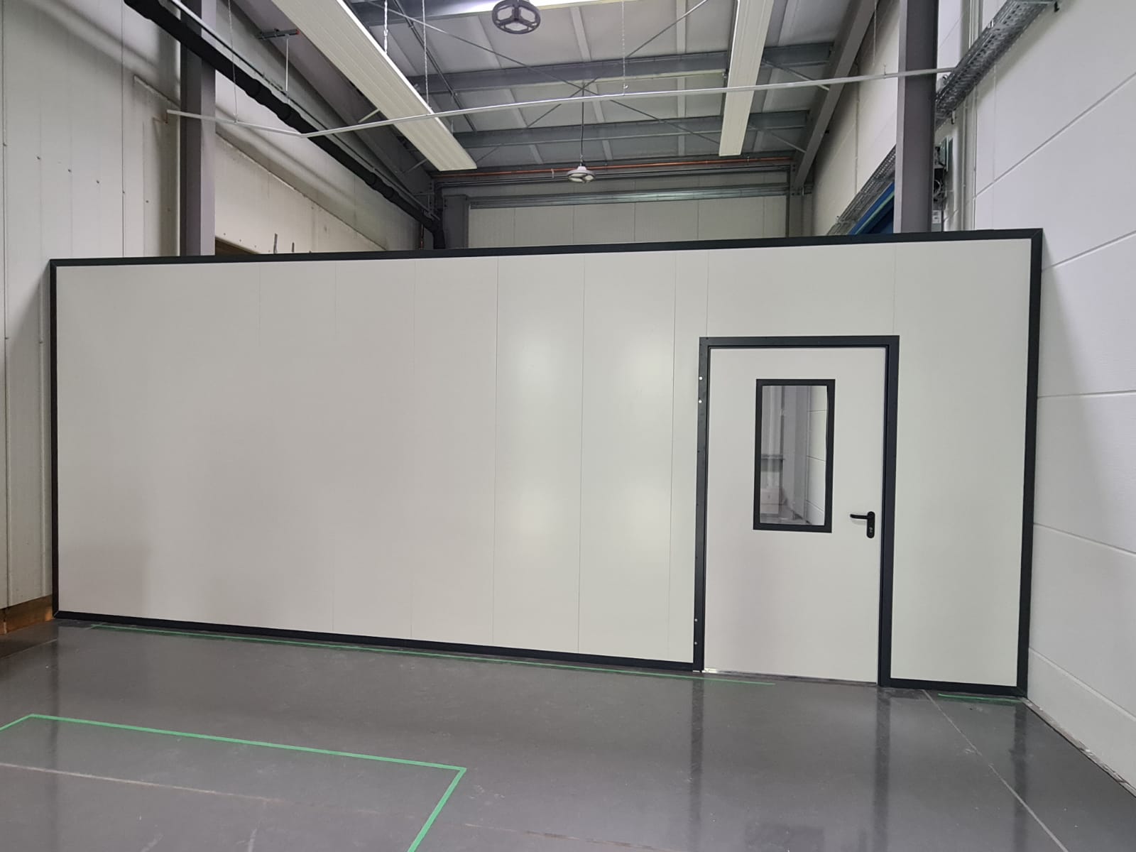 Die Elemente der ca. 40 m² große Maschineneinhausung wurden ebenerdig montiert. Die Nutzung des vorhandenen Hallenbodens bietet den Vorteil eines barrierefreien Zugangs. Mit einer Raumhöhe von 3 m und der Doppelflügeltür können die Filteranlagen problemlos untergebracht werden.