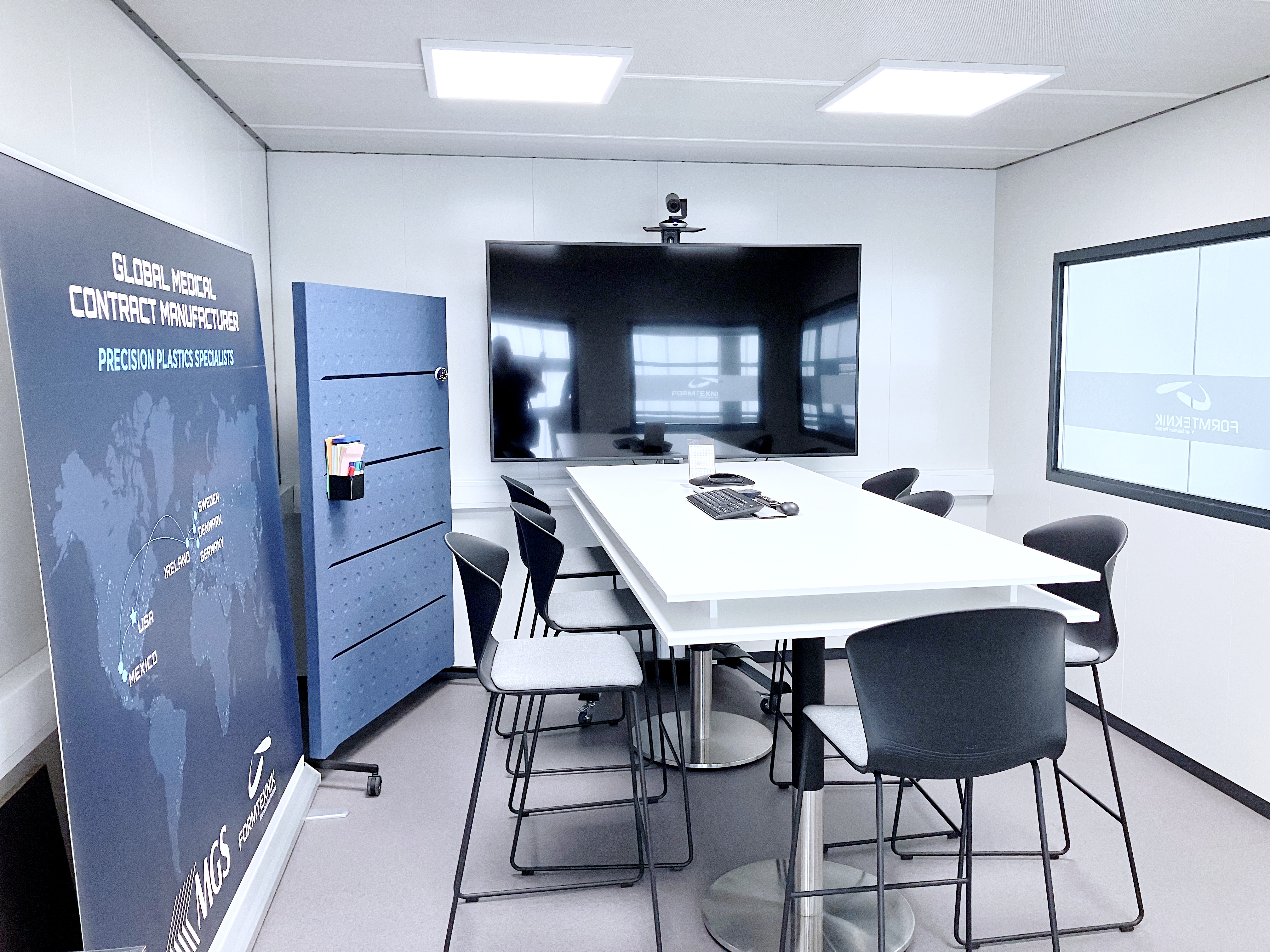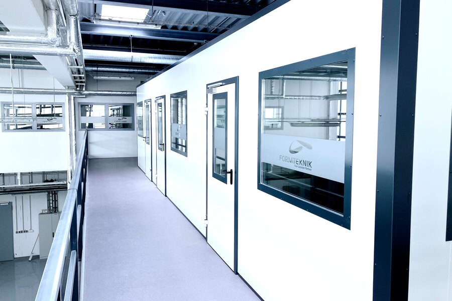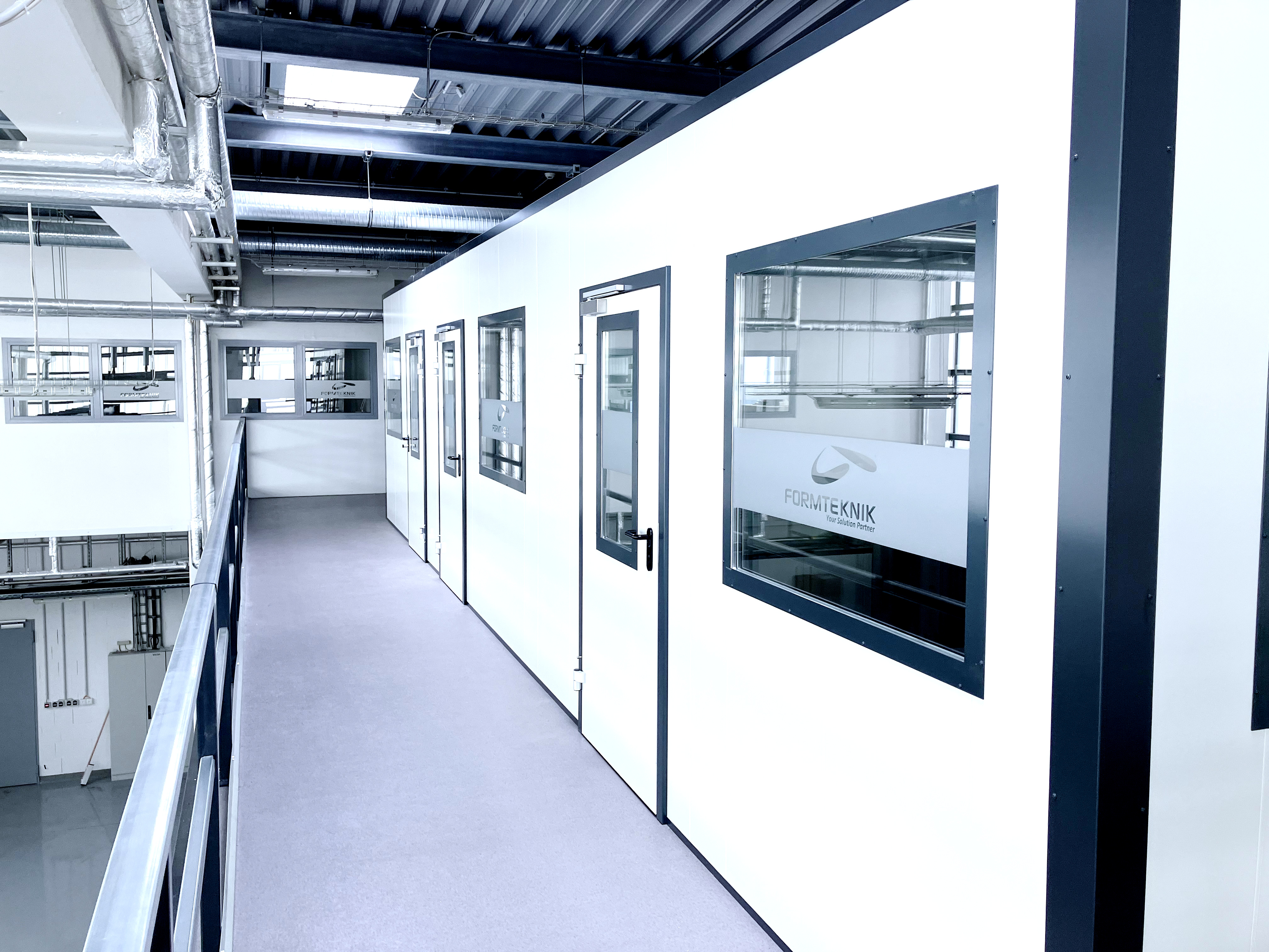 Die Firma FORMTEKNIK GmbH bietet Komplettlösungen für Formen und Systeme in den Bereichen Medizintechnik und Verpackungsindustrie an. Dabei reicht das Leistungsspektrum vom Entwurf bis zur schlüsselfertigen Spritzgießlösung für die Hochvolumenproduktion. Wenn es um Qualität, Langlebigkeit und Innovation im Dienste der Kunden geht, macht die FORMTEKNIK GmbH keine Kompromisse. Das neue multifunktionale Hallenbüro der Firma Jansen Systembau unterstützt die Erfüllung dieser Qualitätsansprüche. Es bietet eine hochwertige, geschützte- und präzise Messumgebung und schafft gleichzeitig zusätzliche Büros in denen konzentriertes Arbeiten inmitten einer Industriehalle möglich ist.