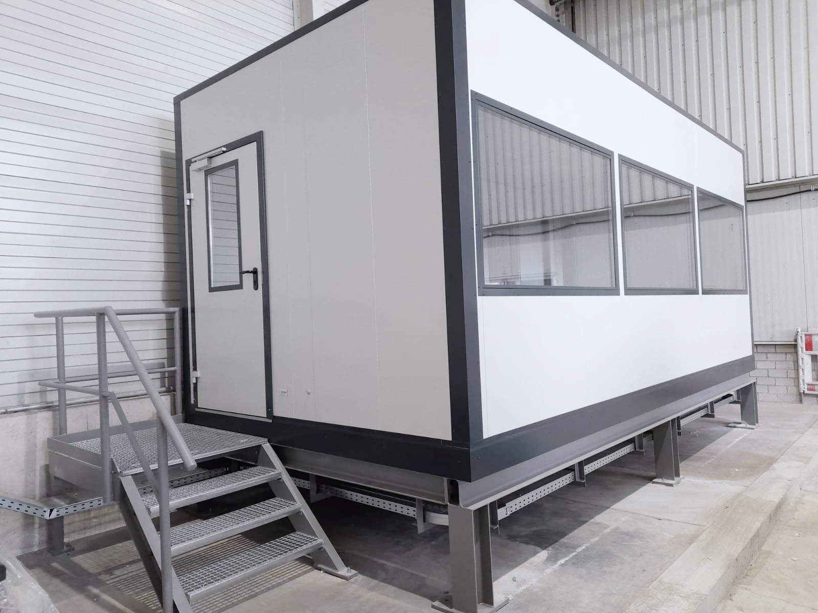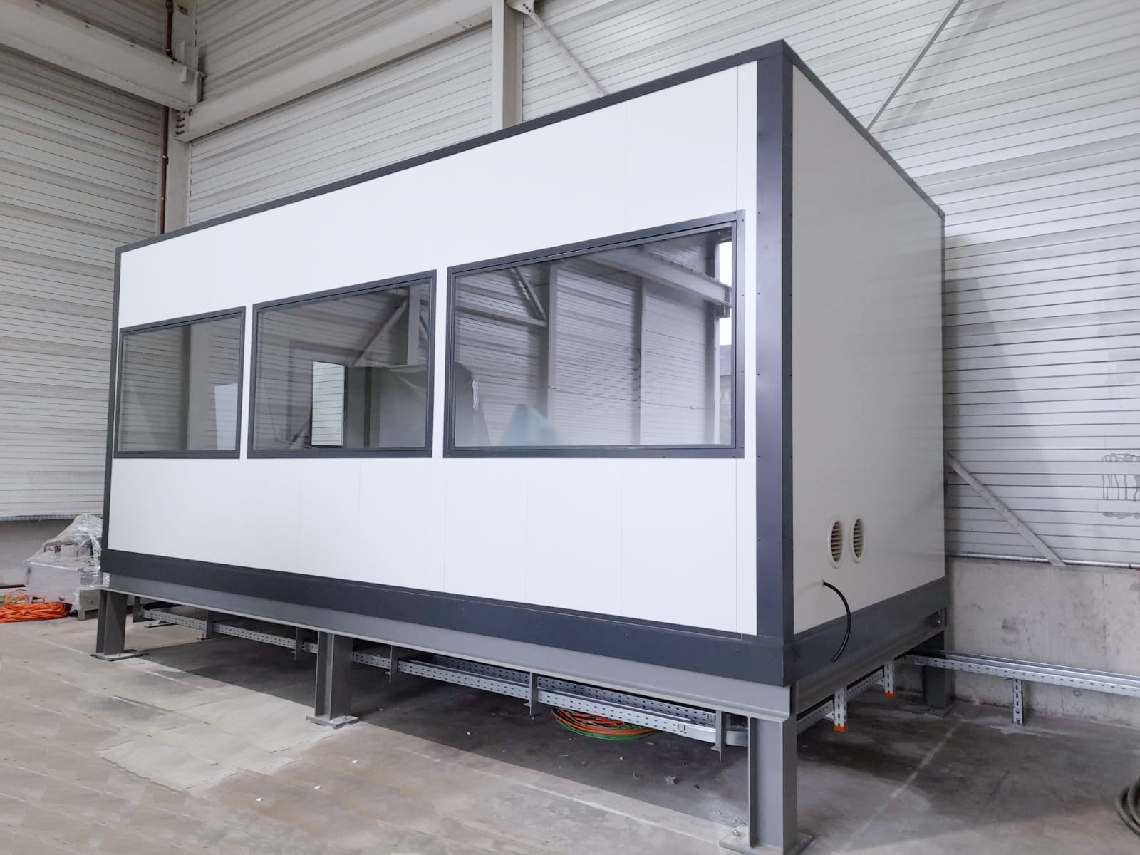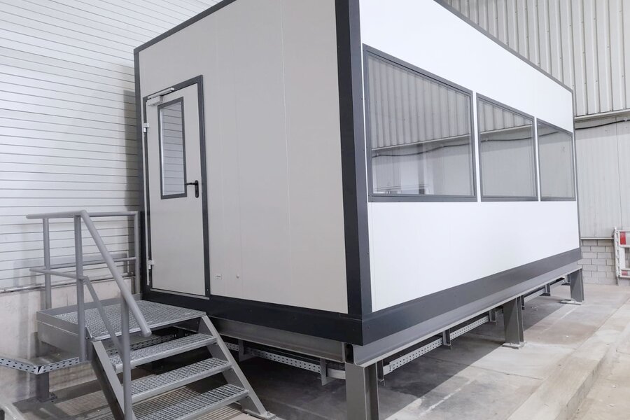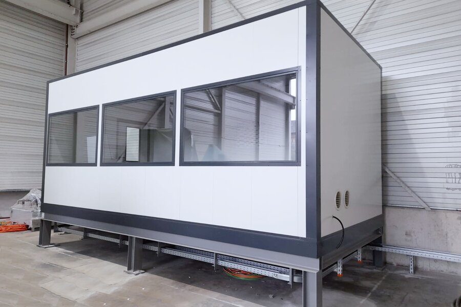 Im Zuge der Lager- und Produktionsflächenerweiterung entstand neuer Bedarf an einem klimatisierten werksfertigen Modulraum. Besonders wichtig dabei, dass das Steuerpult mit seinem hohen Eigengewicht stabil steht. Einer Herausforderung, der wir gewachsen sind.