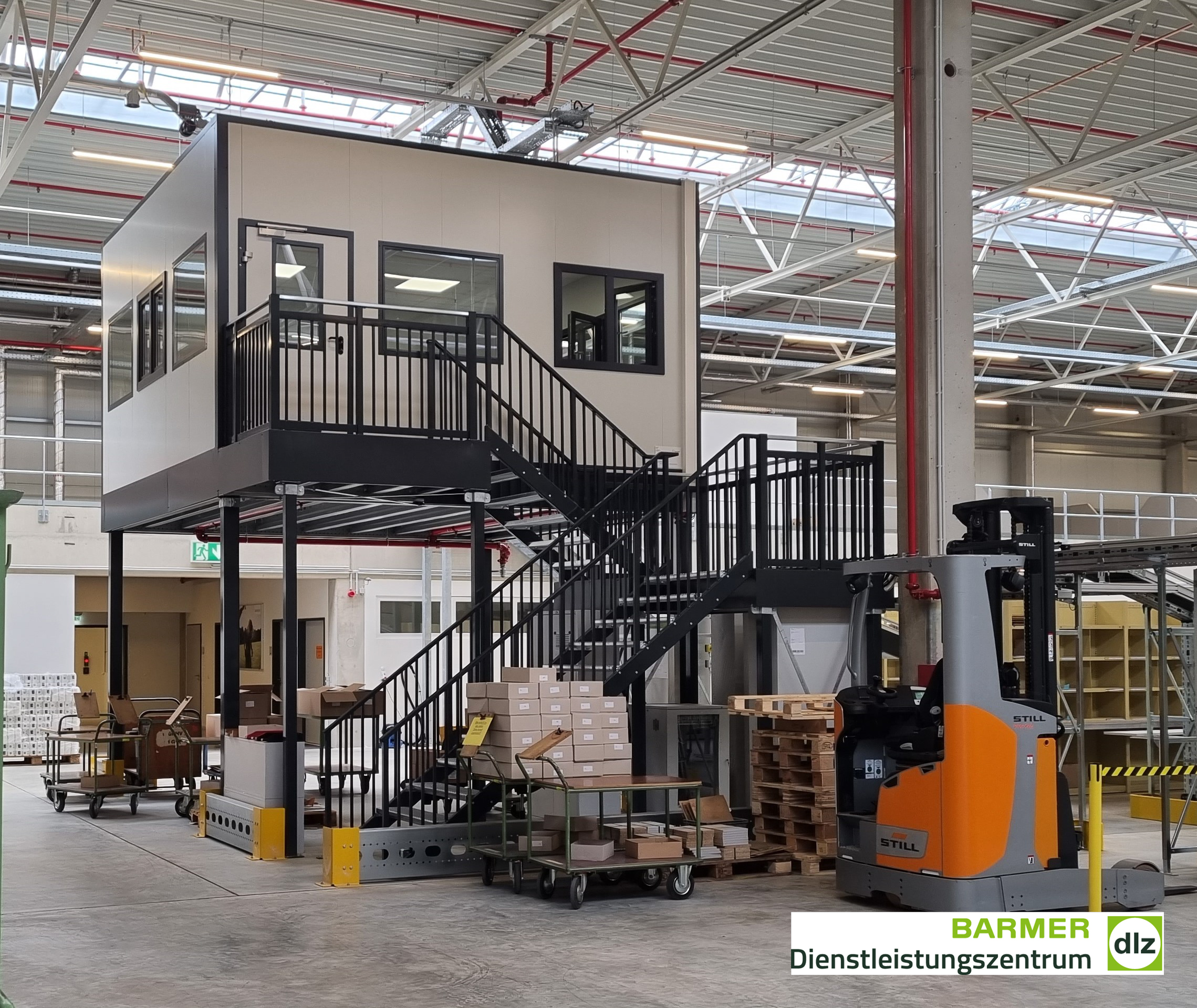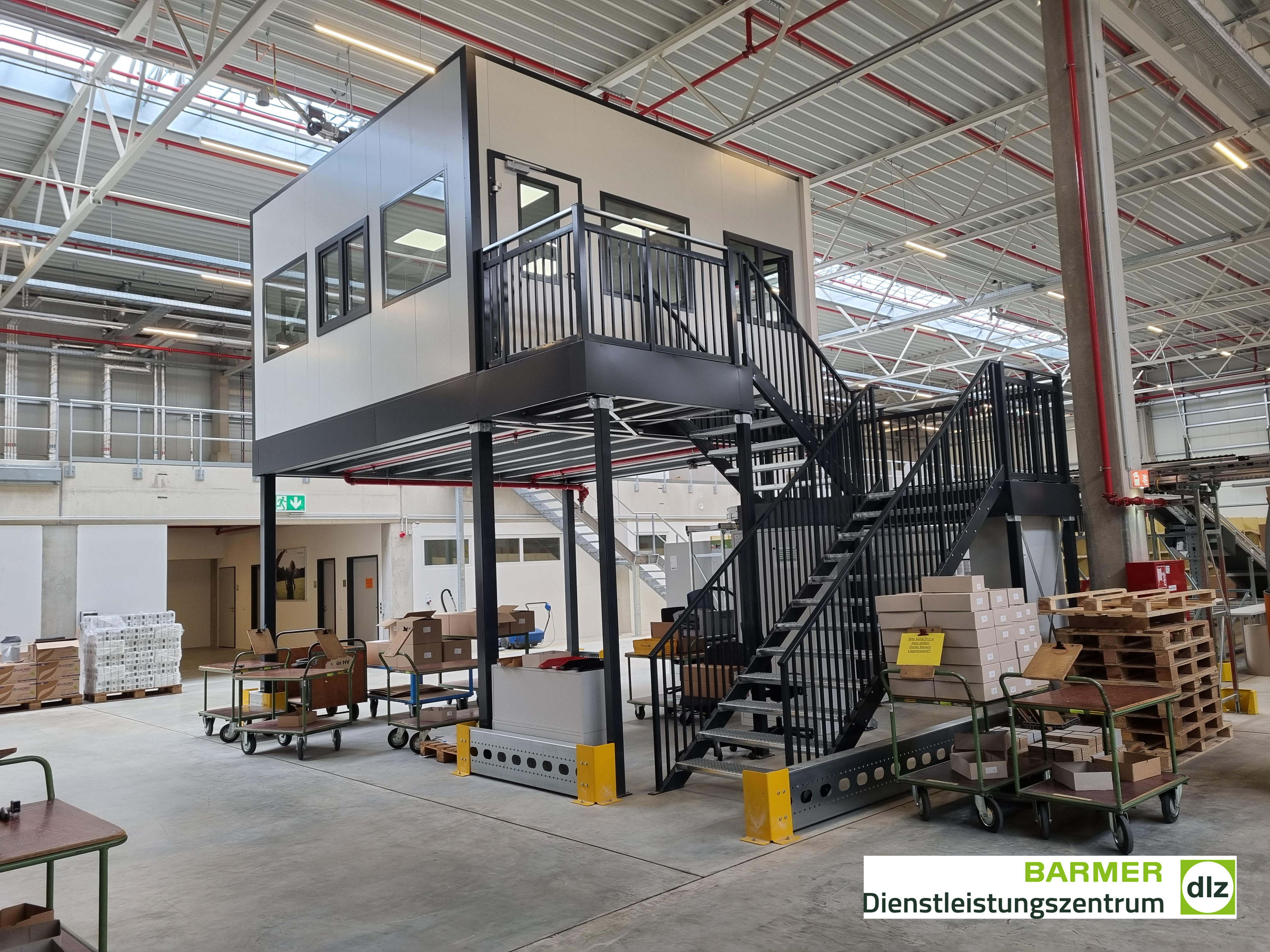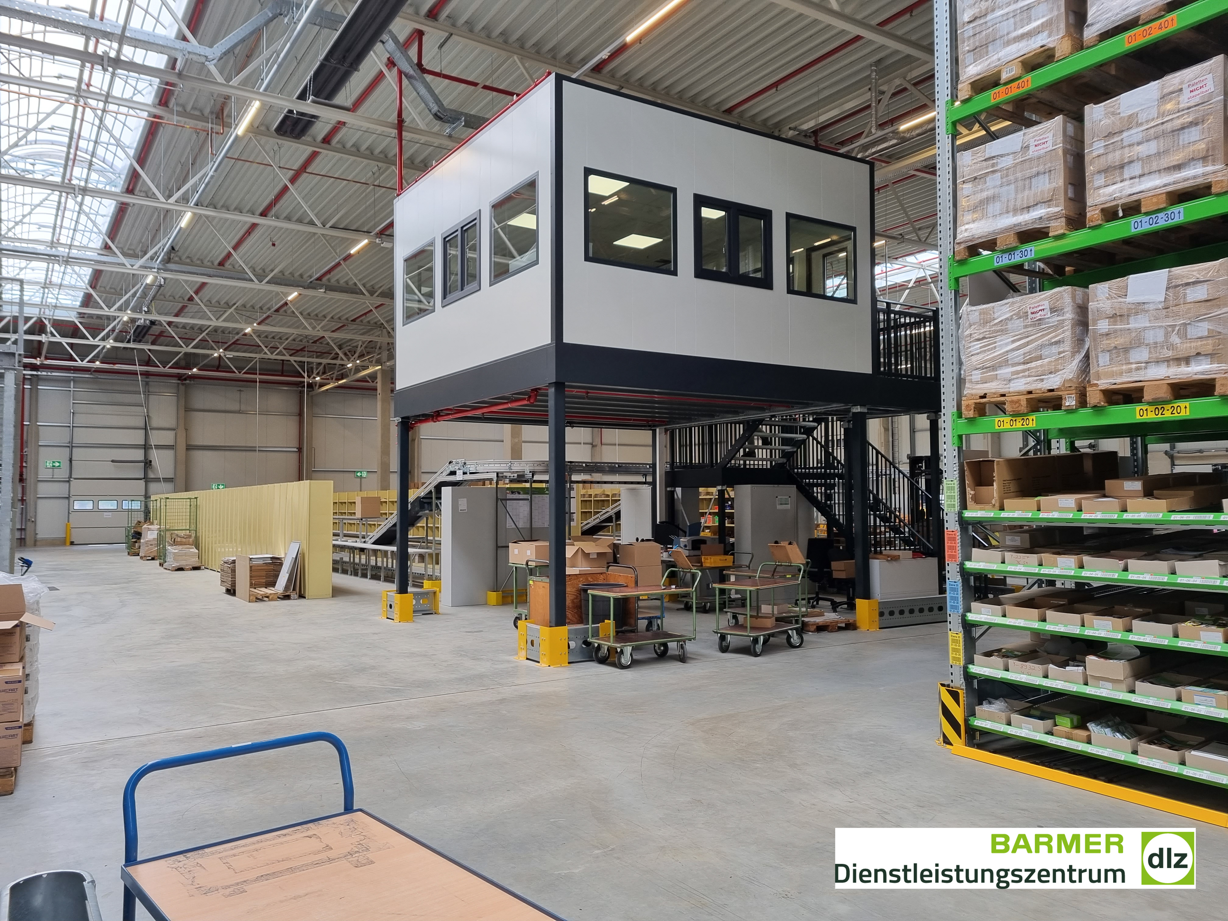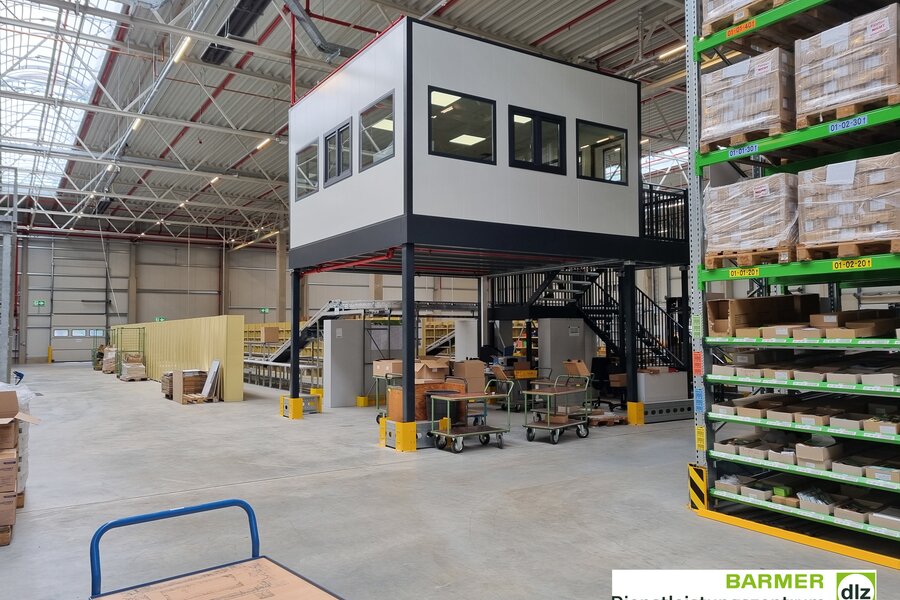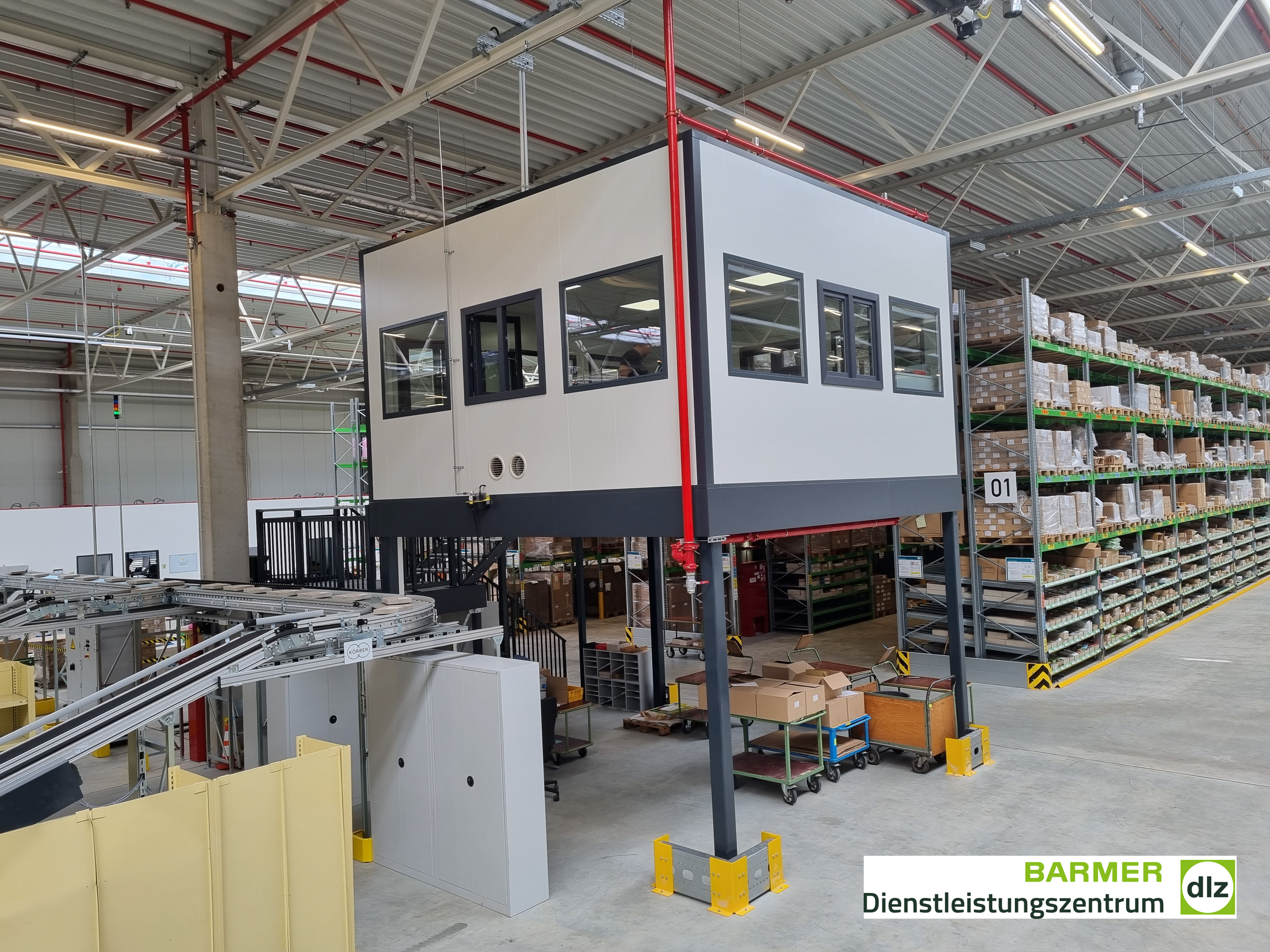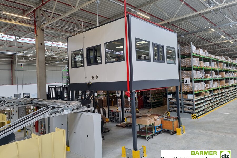 Das in 3,40 m Höhe entstandene, 25 Quadratmeter große Hallenbüro mit Leitstandfunktion, wurde im Werk von Jansen Systembau vorgefertigt und innerhalb eines Montagezeitraums von 7 Werktagen erstellt.