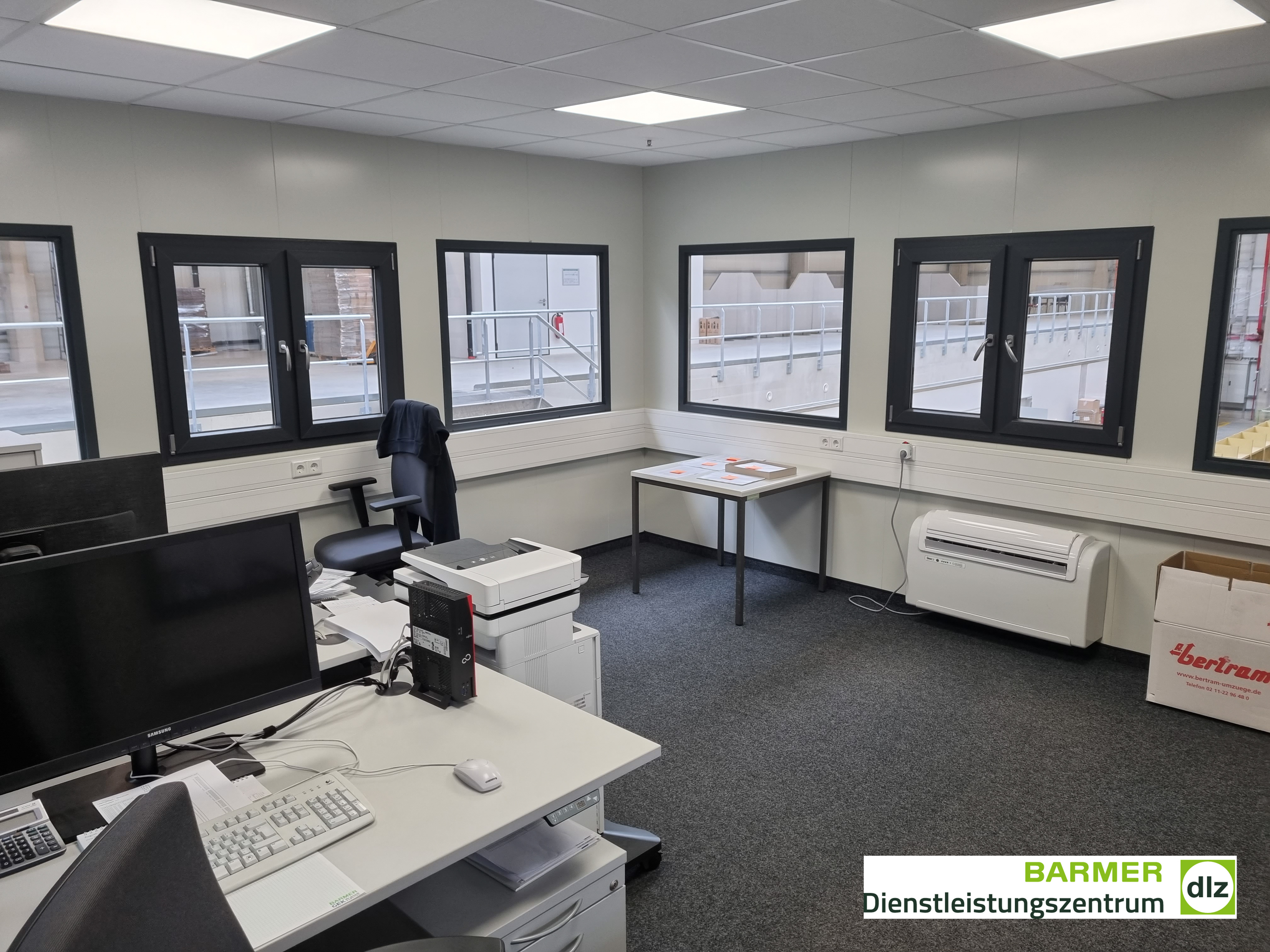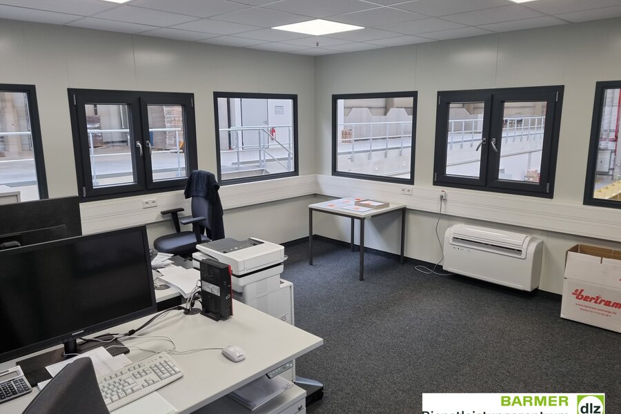Elf eingebaute Fenster aus Verbundglas sorgen für einen guten Überblick in das Geschehen des neuen Dienstleistungszentrums von BARMER. Regelmäßiges Lüften gehört zu den wichtigen Corona-Schutz-Maßnahmen und trägt auch zur Steigerung der Konzentration bei. Aus diesem Grund sind vier der elf Fenster mit Dreh-Kipp-Funktion ausgeführt.