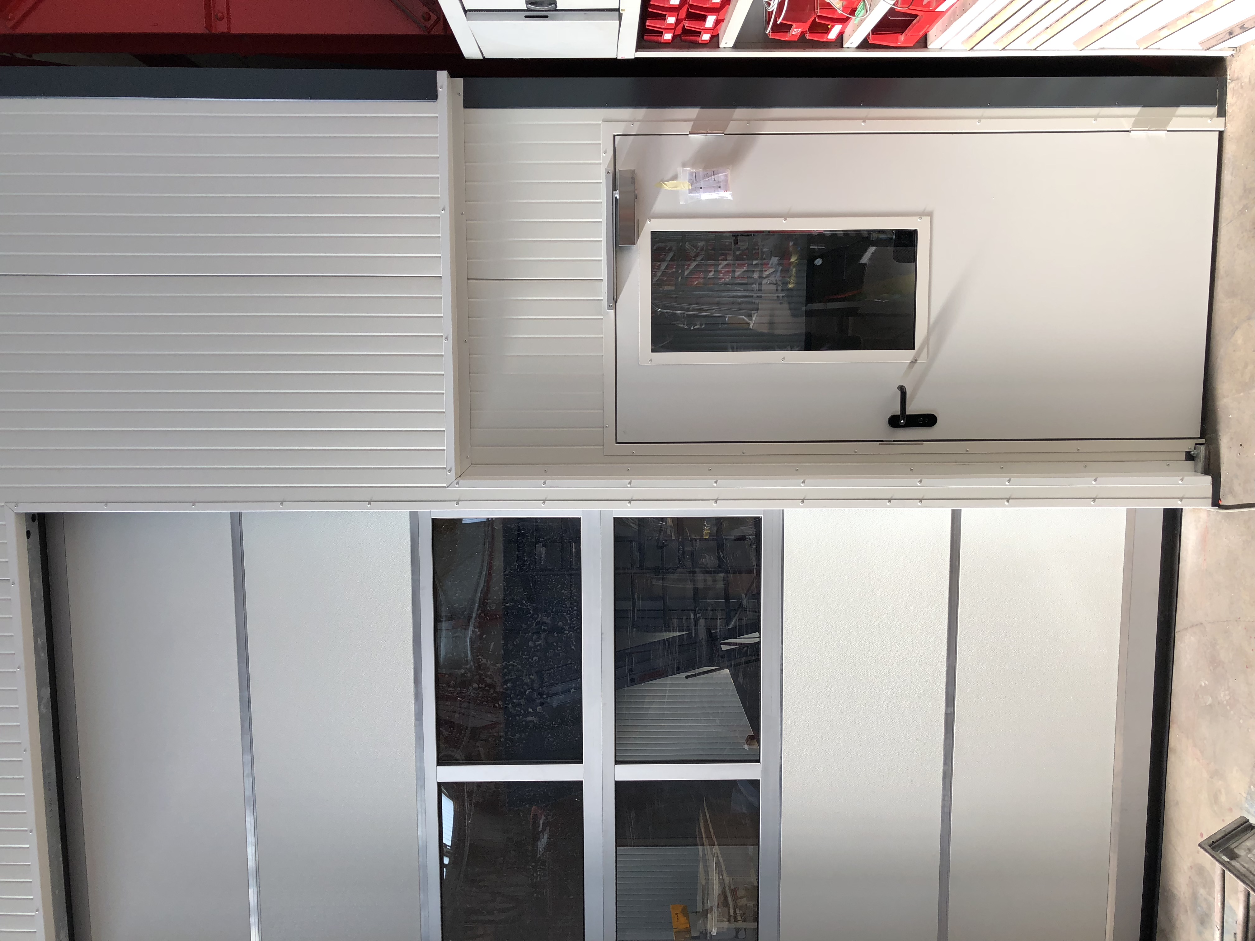 Der Messraum mit einer Breite von 6,80 m, Länge von 11,60 m und einer Höhe von 6,00 m ist ausgestattet mit zwei Sektionaltoren, einer großen Drehflügeltür sowie Fluchttüren und Sichtfenstern.