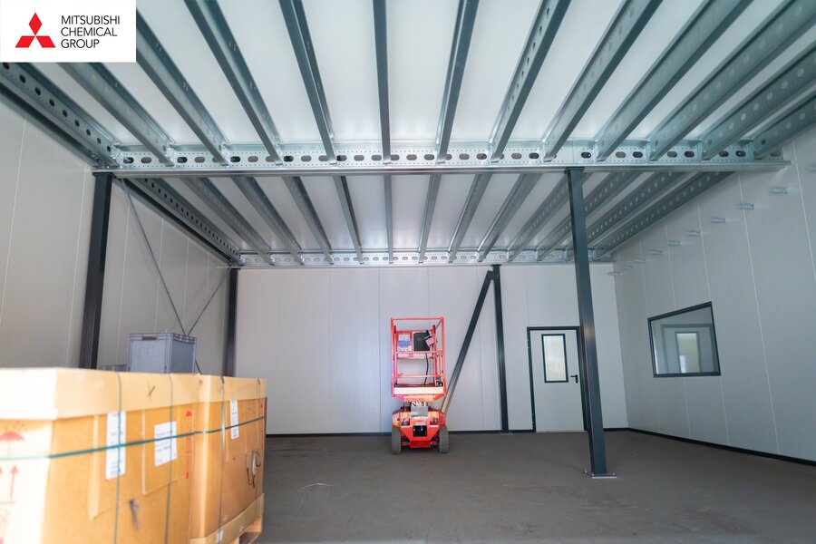 Raum für strukturiertes Arbeiten: Mit der neuen Stahlbühne und den gewünschten Produktionsräumen hat die Firma Mitsubishi Chemical Advanced Materials GmbH die idealen räumlichen Bedingungen, um ihre Produktion zu strukturieren. Ein zusätzlicher Vorteil der neuen Produktionsräume: Lärmquellen werden durch die Schallschutzwände eingedämmt und es kann somit noch produktiver gearbeitet werden.