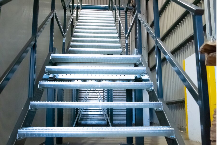 Das Herzstück unseres Bauprojekts ist die Stahlbühne mit einer Nutzfläche von etwa 300 m² und einer Traglast von 500 kg/m². Der Boden der Stahlbaubühne wurde mit hochverdichteten Bodenplatten ausgelegt. Für die Sicherheit der Mitarbeiter sorgen wir in doppeltem Sinne: Die Oberseite der Bodenplatten besteht aus einer Anti-Slip Beschichtung und ist zudem nach den strengen Vorgaben der DIN EN 13501-1 schwer entflammbar (cfl-s1).