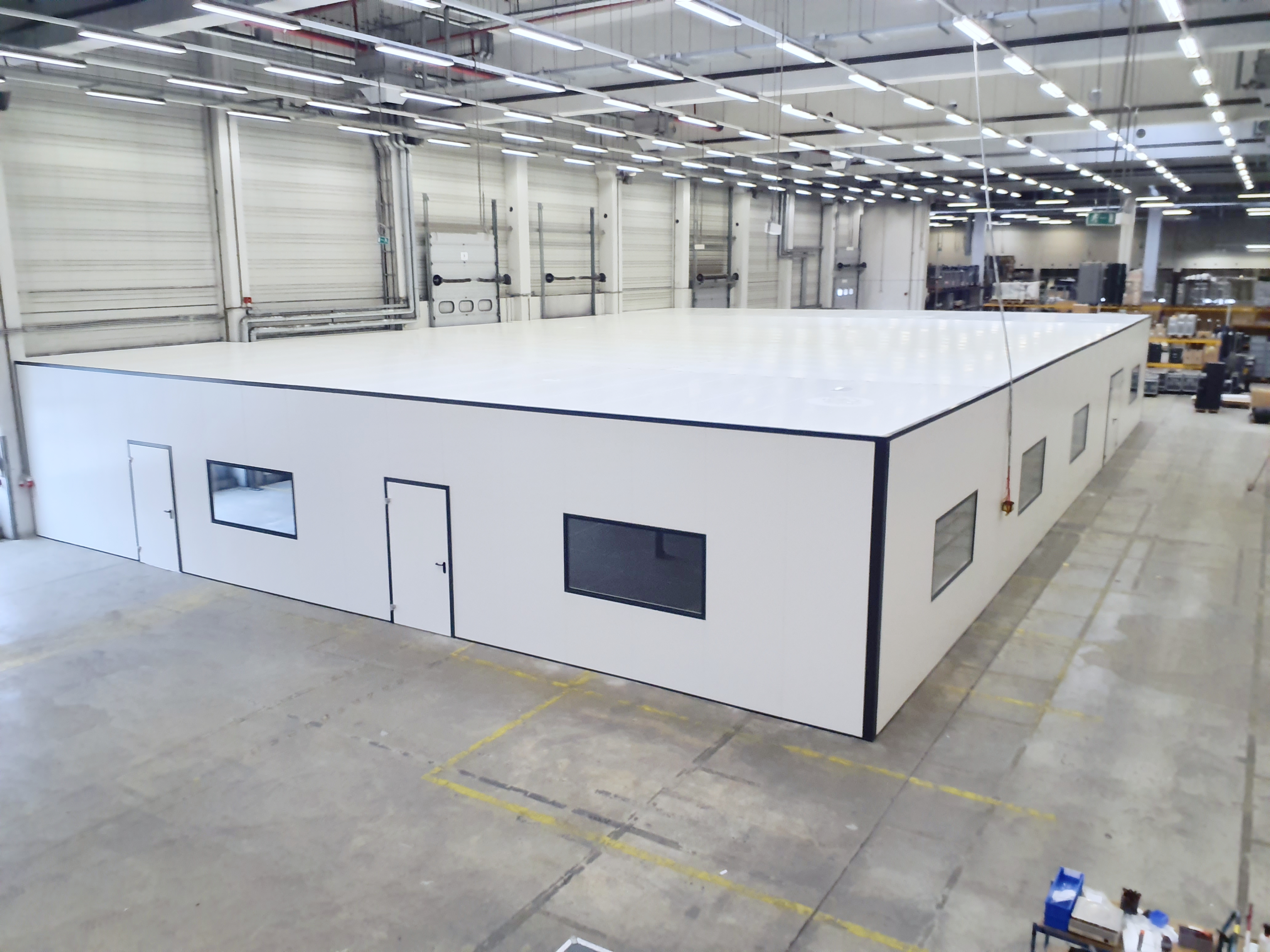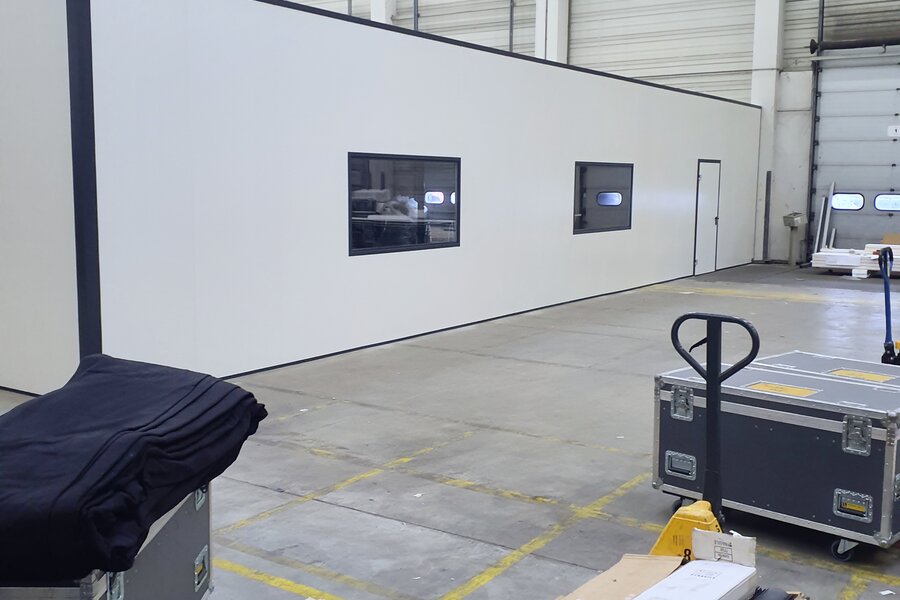 Wir isolieren Lärm und Schmutz mithilfe des neuen Modulraums bei Neumann & Müller GmbH & Co. KG in Leipzig