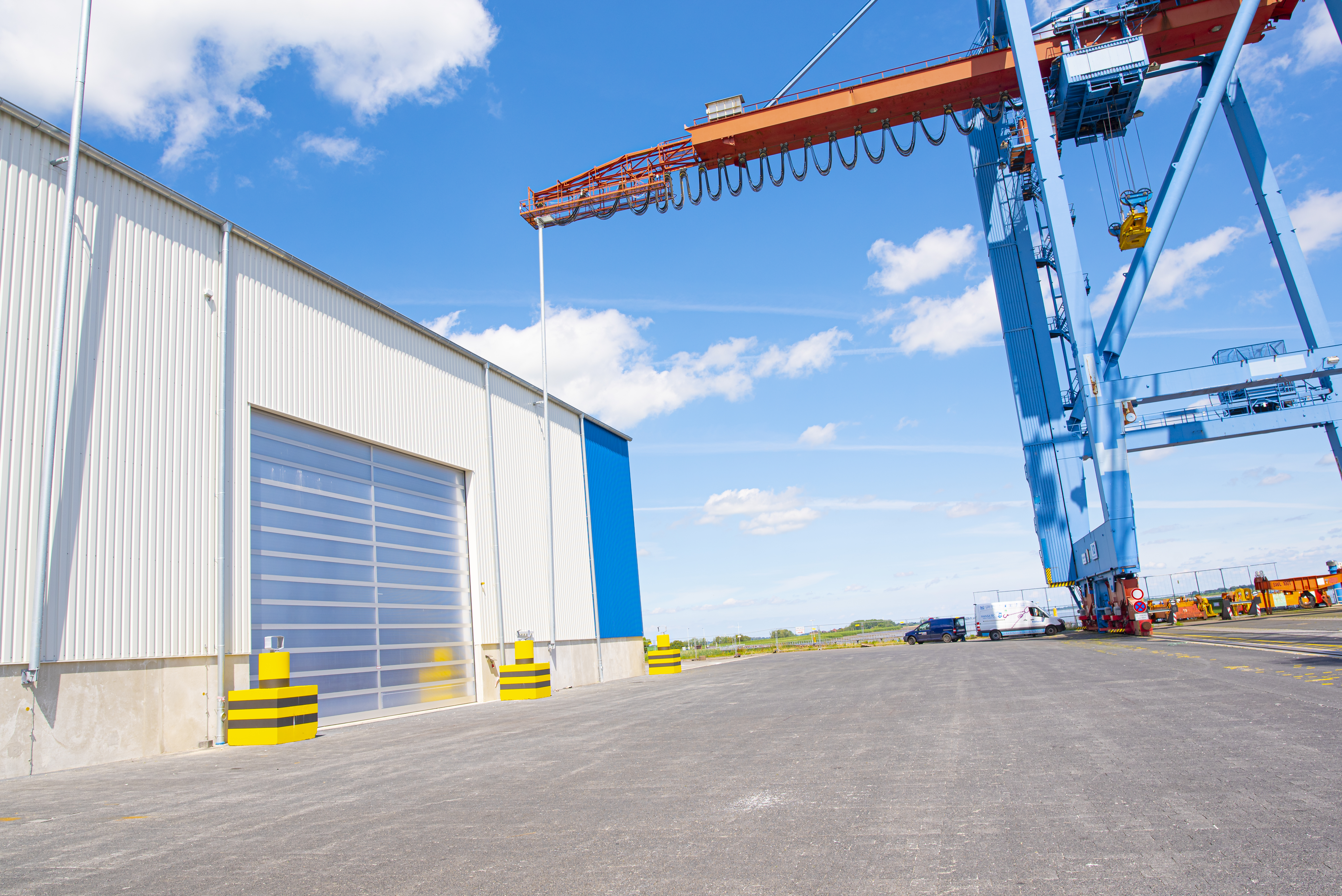 Der hochmoderne „Vorzeige-Kai“ ist zugeschnitten auf das Handling von großen Komponenten für Windkraftanlagen. Aus diesem Grund wurden die Hallen mit großen und robusten Jansen Polycarbonattoren ausgestattet. Die 11 x 8,1 m großen Sektionaltore sind 80mm stark und überzeugten bei der Vergabe durch ihre hohe Härte sowie die Ausdauer gegen physische- und witterungsbedingte Einflüsse.