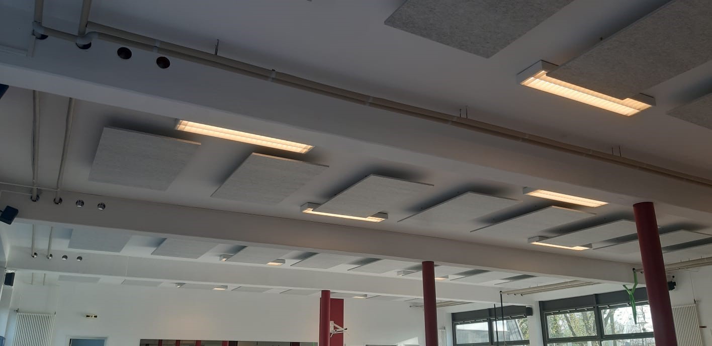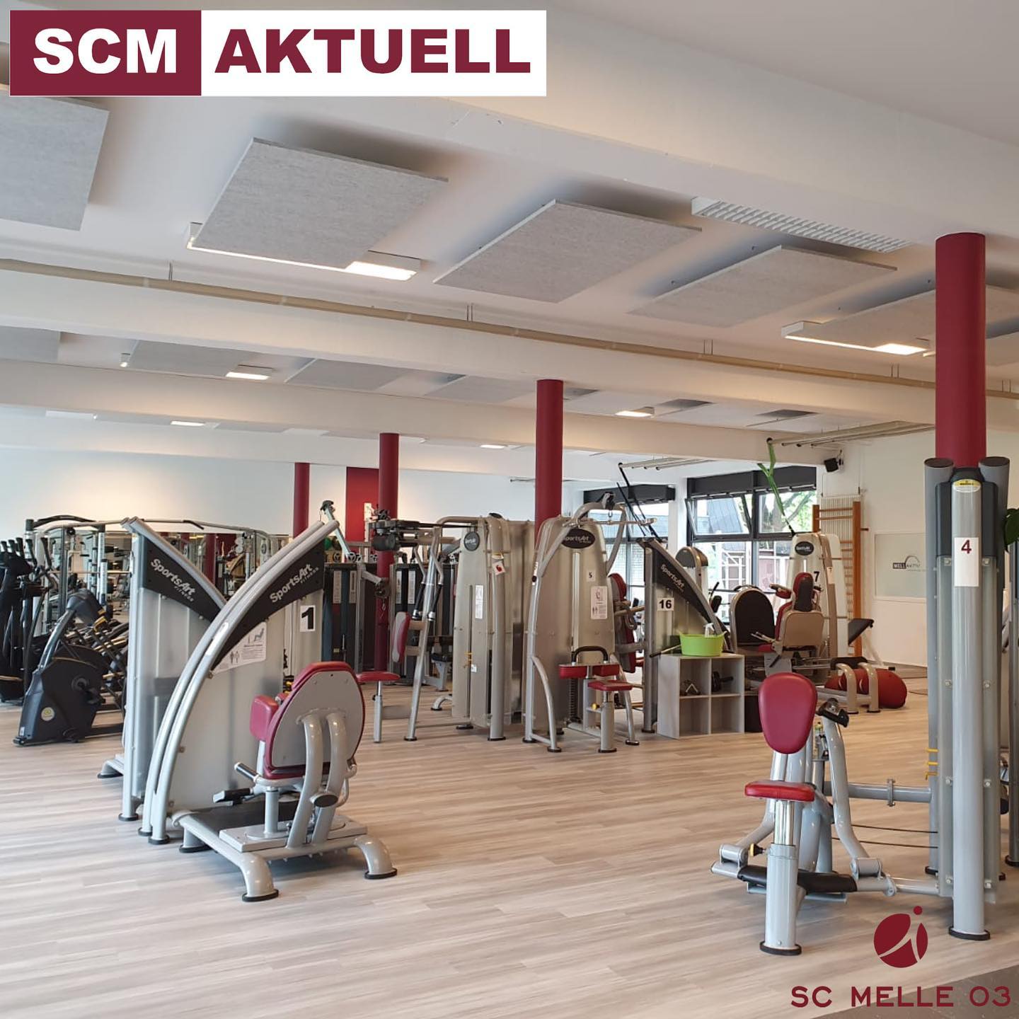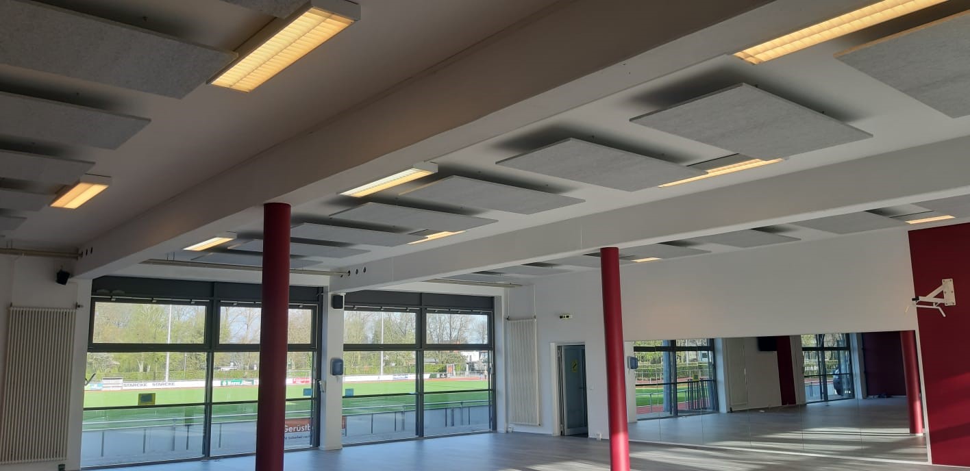 Das Fitnessstudio im Sportparc Melle wurde kürzlich renoviert. Der alte Teppichboden sollte durch einen glatten Vinylboden ausgetauscht werden, wodurch eine Verschlechterung der Raumakustik zu befürchten war.