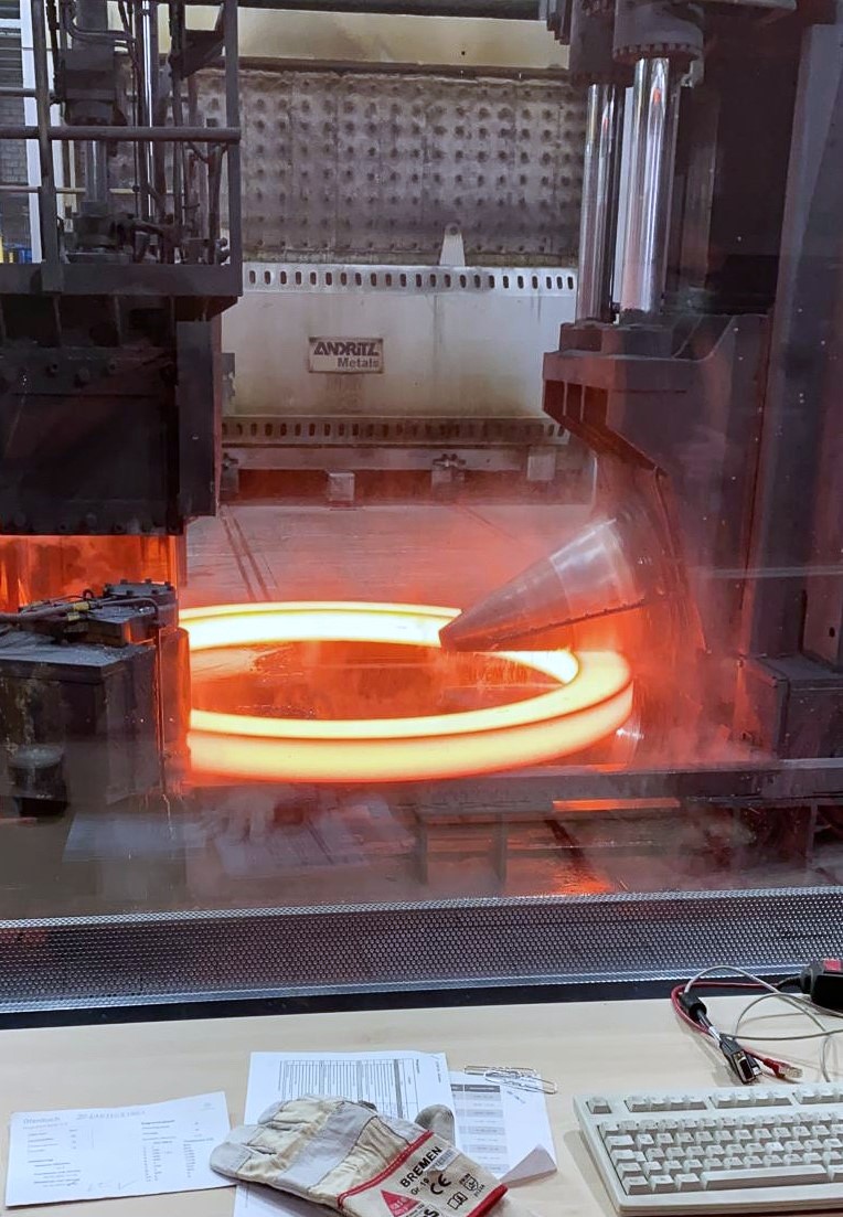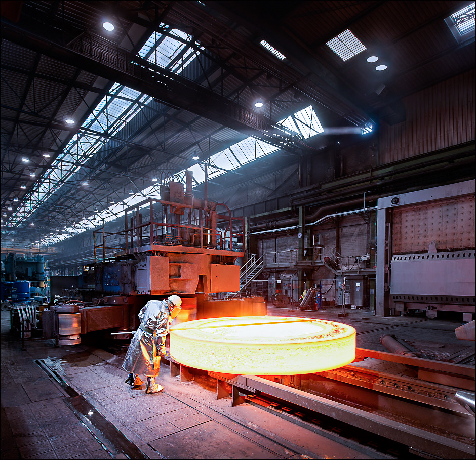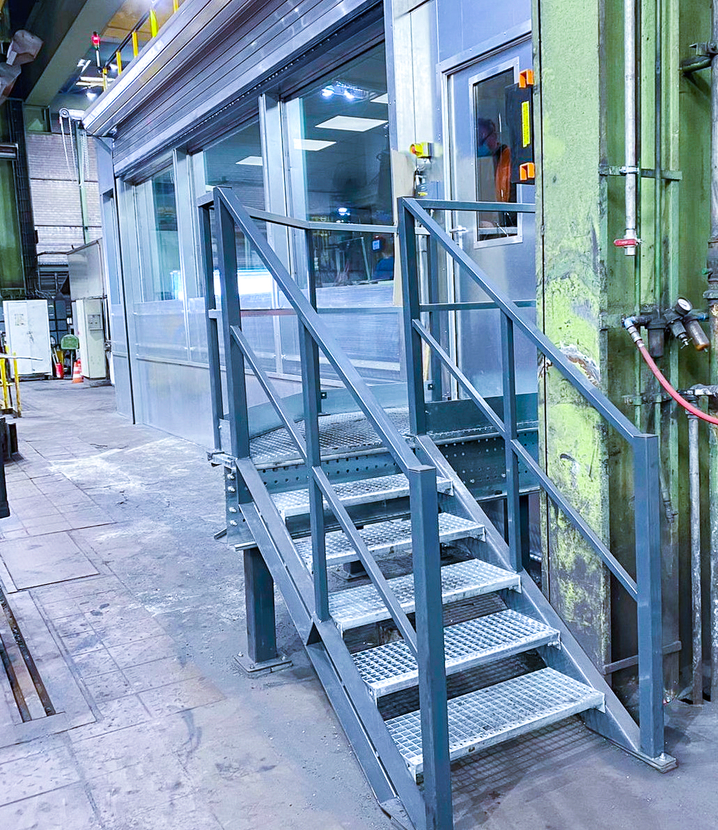 Hitzefrei? So etwas kennen die Mitarbeiter im Stahlwerk thyssenkrupp rothe erde in Dortmund nicht. Denn für die Herstellung der bis zu acht Meter großen Stahlringe wird der Stahl auf 1200 Grad erhitzt. Die Temperaturen in der Arbeitsumgebung können bis auf 45 Grad Celsius ansteigen. Um die Mitarbeiter und die Steuerelemente vor dieser Hitze zu schützen, fertigten wir für die thyssenkrupp rothe erde einen hitzegeschützten Steuerstand. Ausdrücklicher Wunsch war, von dort einen guten Rundumblick ins Werk zu haben.