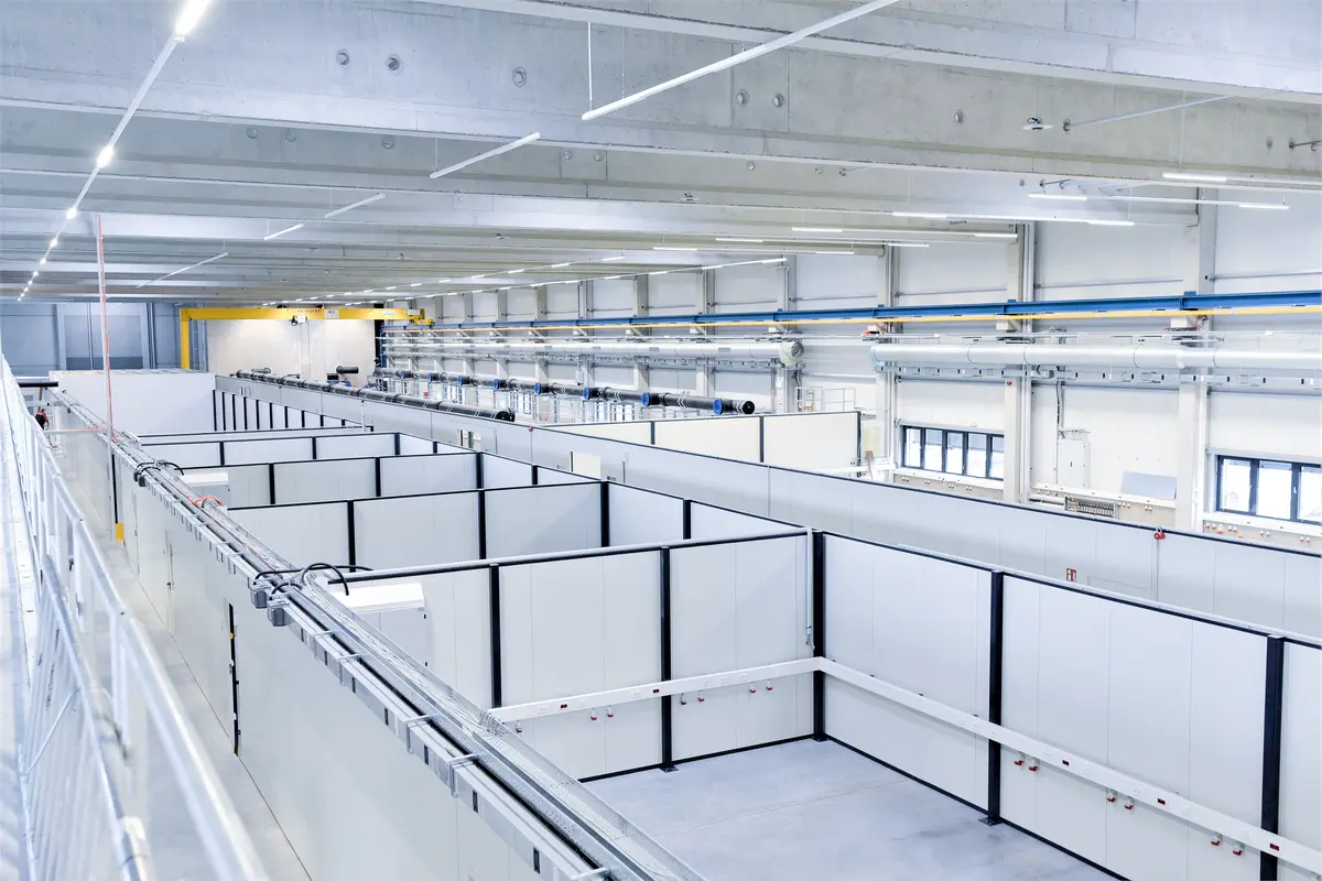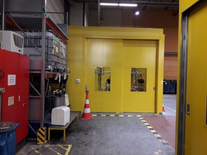 Bei diesem Projekt sind mehrere, neue Raumeinheiten an unterschiedlichen Aufstellorten innerhalb der Produktion des Kunden entstanden mit dem Zweck, die Prozess- und Arbeitssicherheit weiter zu verbessen. Der Lieferumfang erstreckt sich über diverse Trennwände, zwei Türen und vier Schiebetore mit Sichtfenstern.